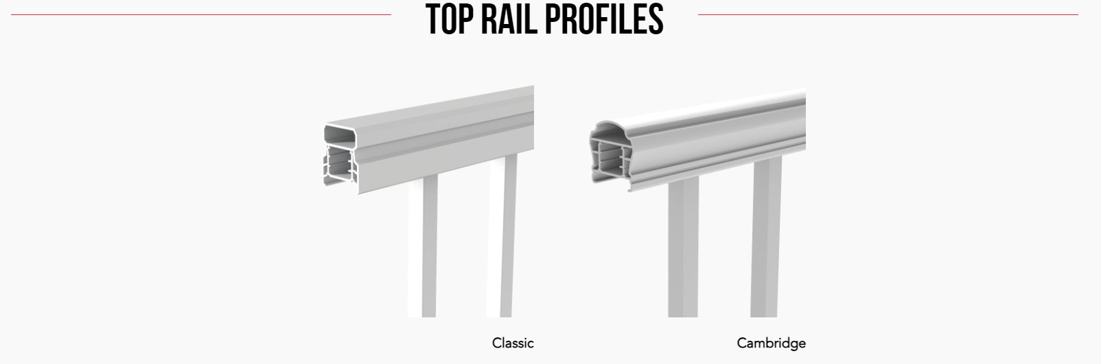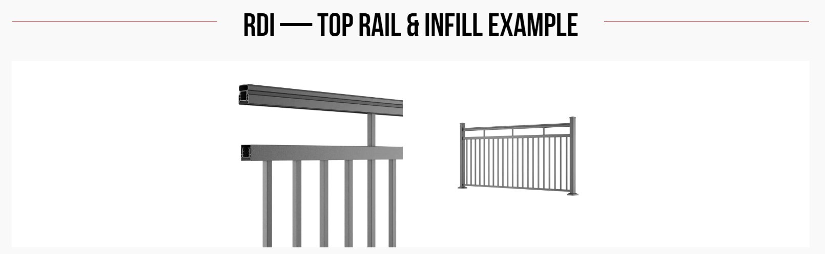 Rust-resistant RDI ornamental railing, with its premium powder coating, features a sleek design that pairs beautifully with any application — residential or commercial. Available with three top rail profiles and a unique
