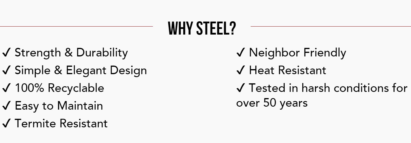 Steel fences are 100% recyclable. They result in less scraps during the installation process. In addition, as the material is termite proof, you do not need to apply chemicals for treatment so they are better for the environment all around!